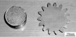 SiAlONs are produced by first combining a mixture of raw materials including silicon nitride, alumina, aluminium nitride, silica and the oxide of a rare-earth element such as yttrium. The powder mix is fabricated into a "green" compact by isostatic powder compaction or slipcasting, for example. Then the shaped form is densified, typically by pressureless sintering or hot isostatic pressing. Abnormal grain growth has been extensively reported for SiAlON ceramics, and results in a bimodal grain size distribution of the sintered material. The sintered part may then need to be machined by diamond grinding (abrasive cutting).[3] Alternatively, they can be forged into various shapes at a temperature of ca. 1200 °C.[5]
