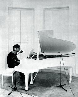 As his career progressed, he played a variety of electric guitars, predominantly the Rickenbacker 325, Epiphone Casino and Gibson J-160E, and, from the start of his solo career, the Gibson Les Paul Junior.[311][312] Double Fantasy producer Jack Douglas claimed that since his Beatle days Lennon habitually tuned his D-string slightly flat, so his Aunt Mimi could tell which guitar was his on recordings.[313] Occasionally he played a six-string bass guitar, the Fender Bass VI, providing bass on some Beatles numbers ("Back in the U.S.S.R.", "The Long and Winding Road", "Helter Skelter") that occupied McCartney with another instrument.[314] His other instrument of choice was the piano, on which he composed many songs, including "Imagine", described as his best-known solo work.[315] His jamming on a piano with McCartney in 1963 led to the creation of the Beatles' first US number one, "I Want to Hold Your Hand".[316] In 1964, he became one of the first British musicians to acquire a Mellotron keyboard, though it was not heard on a Beatles recording until "Strawberry Fields Forever" in 1967.[317]
