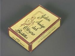 Liquid soap was invented in the nineteenth century; in 1865, William Sheppard patented a liquid version of soap.[64] In 1898, B.J. Johnson developed a soap derived from palm and olive oils; his company, the B.J. Johnson Soap Company, introduced "Palmolive" brand soap that same year.[65] This new brand of soap became popular rapidly, and to such a degree that B.J. Johnson Soap Company changed its name to Palmolive.[66]