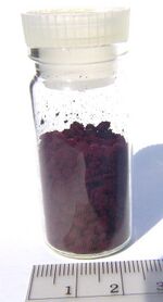 Rhenium(III) bromide also adopts the same structure, and is a black lustrous crystalline solid.[31][32] It can be obtained by the direct reaction between rhenium metal and bromine at 500 °C under nitrogen:[33]