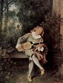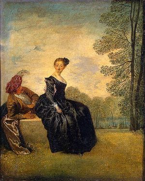 Jean-Antoine Watteau (October 10, 1684 – July 18, 1721) was a French painter best known for his invention of a new genre, the fête galante, a small easel painting of an idyllic scene with elegant people enjoying conversation or music in the beauty of the natural world.