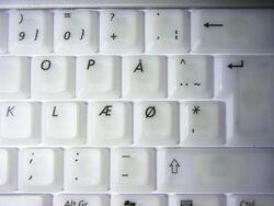 The modern Danish alphabet is similar to the English one, with three additional letters: Template:Vr, Template:Vr, and Template:Vr, which come at the end of the alphabet, in that order. The letters Template:Vr, Template:Vr, Template:Vr, Template:Vr and Template:Vr are only used in loan words. A spelling reform in 1948 introduced the letter Template:Vr, already in use in Norwegian and Swedish, into the Danish alphabet to replace the digraph Template:Vr.[107] The old usage continues to occur in some personal and geographical names; for example, the name of the city of Aalborg is spelled with Template:Vr following a decision by the City Council in the 1970s and Aarhus decided to go back to Template:Vr in 2011. When representing the same sound Template:Vr, Template:Vr is treated like Template:Vr in alphabetical sorting, though it appears to be two letters. When the letters are not available due to technical limitations, they are often replaced by Template:Vr (for Template:Vr), Template:Vr or Template:Vr (for Template:Vr), and Template:Vr (for Template:Vr), respectively.