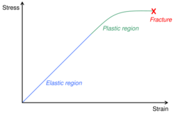 Elastic deformation, however, is an approximation and its quality depends on the time frame considered and loading speed. If, as indicated in the graph opposite, the deformation includes elastic deformation, it is also often referred to as "elasto-plastic deformation" or "elastic-plastic deformation".