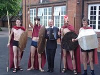 Pranks have sometimes been carried out by departing Sixth Formers. Examples in different years have included: the school's blue gates were temporarily painted pink; a large boat was brought onto the cricket grounds; students hung various banners from the library and there was a sea-themed water fight; musicians played on the school field while other activities took place such as releasing some farm animals, having an inflatable castle, an ice-cream van, and fancy dress. Sixth Formers now enjoy a Leavers' Day with fancy dress and fun events on the field.