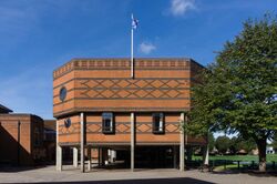 North of the town centre, Ipswich School has four parts on three adjacent sites. The Pre-Prep and Nursery were established in 1883 with the aim of preparing children aged 7 to 11 for entry into the Senior School. The Senior School occupies the main school site. The main buildings are a distinctive example of Victorian architecture, with Tudor style brick. The main building and chapel are both Grade II listed.[1] The school buildings surround a central playing field and cricket square along with the Cricket Pavilion. The remainder of the School's sport's fields are located at a nearby site on the edge of the town. The School has a new purpose-built music school, adjacent to the Cricket Pavilion.