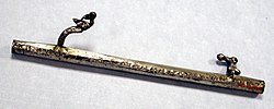 Another type of Stone Age artefact that is sometimes excavated is the bâton de commandement. These are shorter, normally less than one foot long, and made of antler, with a hole drilled through them. When first found in the nineteenth century, they were interpreted by French archaeologists to be symbols of authority, like a modern field marshal's baton, and so named bâtons de commandement ("batons of command"). Though debate over their function continues, tests with replicas have found them effective aids to spear or dart throwing when used with a cord,.[30] Another theory is that they were "arrow-straighteners".[citation needed]