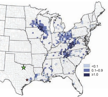 Geographic distribution of La Crosse virus (LACV) in accordance with the habitat range of Aedes triseriatus mosquitoes in the United States(1995-2008)