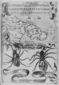 Francesco Cancellieri, in his exhaustive treatise on Tarantism, takes note of semi-scientific, literary, and popular observations, both recent and ancient, giving each similar weight.[6] He notes a report that in August 1693, a doctor in Naples had himself been bitten by two tarantulas, with six witnesses and a notary, but did not suffer the dancing illness. Cancellieri in part attributes this illness not only to the spiders but to the locale, since Tarantism was mainly seen in Basilicata, Apulia, Sicily, and Calabria. He states: