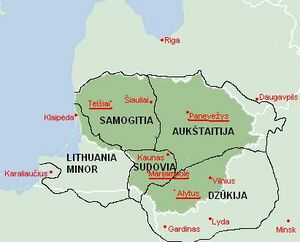Lithuania can be divided into historical and cultural regions (called ethnographic regions). The exact borders are not fully clear, as the regions are not official political or administrative units. They are delimited by culture, such as country traditions, traditional lifestyle, songs, tales, etc. To some extent regions correspond to the zones of Lithuanian language dialects. This correspondence, however, is by no means strict. For example, although the Dzūkian dialect is called South Aukštaitian, it does not mean that Dzūkija is part of Aukštaitija. In certain parts of some regions, dialects of other regions are spoken, while for example in Samogitia, there are three indigenous dialects (southern, northern and western Samogitian), some of which are subdivided into subdialects.[1]