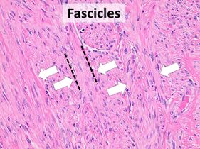 Fascicular: Generally the same cell type throughout, but some form band-like groups that are aligned in the same direction.