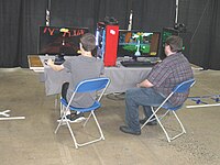 As early as 1950, computer scientists were using electronic machines to construct relatively simple game systems, such as Bertie the Brain in 1950 to play tic tac toe, or Nimrod in 1951 for playing Nim. These systems used either electronic light displays and mainly as demonstration systems at large exhibitions to showcase the power of computers at the time.[1][2] Another early demonstration was Tennis for Two, a game created by William Higinbotham at Brookhaven National Laboratory in 1958 for three-day exhibition, using an analog computer and an oscilloscope for a display.[3]