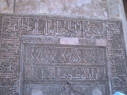 Kalema at Qibla of the Mosque of Ibn Tulun in Cairo, Egypt, displaying the phrase Ali-un-Waliullah (علي ولي الله: "ʿAlī is the Wali (custodian) of God")
