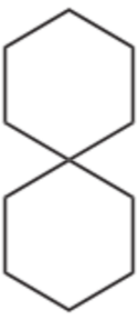 In organic chemistry, spiro compounds are compounds that have at least two molecular rings with only one common atom. The simplest spiro compounds are bicyclic (having just two rings), or have a bicyclic portion as part of the larger ring system, in either case with the two rings connected through the defining single common atom.[3]:SP-0[4]:653,839 The one common atom connecting the participating rings distinguishes spiro compounds from other bicyclics: from isolated ring compounds like biphenyl that have no connecting atoms, from fused ring compounds like decalin having two rings linked by two adjacent atoms, and from bridged ring compounds like norbornane with two rings linked by two non-adjacent atoms.[5][4]:653ff :839ff