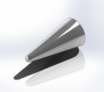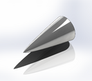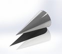 A bi-conic nose cone shape is simply a cone with length L1 stacked on top of a frustum of a cone (commonly known as a conical transition section shape) with length L2, where the base of the upper cone is equal in radius R1 to the top radius of the smaller frustum with base radius R2.