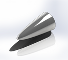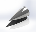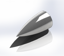 Next to a simple cone, the tangent ogive shape is the most familiar in hobby rocketry. The profile of this shape is formed by a segment of a circle such that the rocket body is tangent to the curve of the nose cone at its base, and the base is on the radius of the circle. The popularity of this shape is largely due to the ease of constructing its profile, as it is simply a circular section.