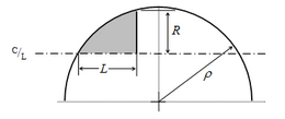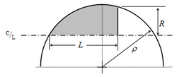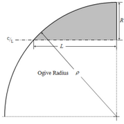 The radius of the circle that forms the ogive is called the ogive radius, ρ, and it is related to the length and base radius of the nose cone as expressed by the formula: