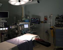 The anesthetic area of an operating room. Induction of anesthesia, where the patient loses consciousness and passes through the Guedel stages of anesthesia, commonly takes place here.