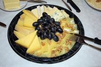 From Handwiki A platter is a large type of dishware used for serving food. It is a tray on which food is displayed and served to people. Its shape can be oval, round, rectangular, or square. It can be made of metal, ceramic, plastic, glass or wood. Plain and ornate platters suitable for more formal settings or occasions are made of, or plated with, silver, and antique examples are considered quite valuable. Especially expensive and ceremonial platters have been made of gold.