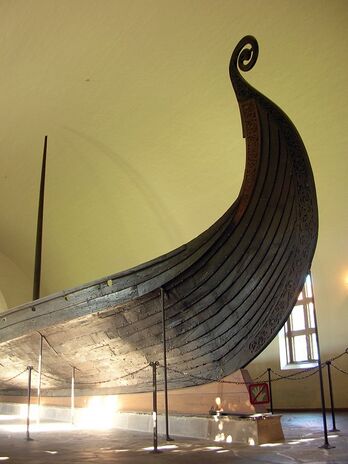 There have been several archaeological finds of Viking ships of all sizes, providing knowledge of the craftsmanship that went into building them. There were many types of Viking ships, built for various uses; the best-known type is probably the longship.[171] Longships were intended for warfare and exploration, designed for speed and agility, and were equipped with oars to complement the sail, making navigation possible independently of the wind. The longship had a long, narrow hull and shallow draught to facilitate landings and troop deployments in shallow water. Longships were used extensively by the Leidang, the Scandinavian defence fleets. The longship allowed the Norse to go Viking, which might explain why this type of ship has become almost synonymous with the concept of Vikings.[172][173]