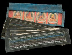 Some Mahāyāna sūtras are also thought to display a distinctly tantric character, like some of the shorter Perfection of Wisdom sutras and the Mahavairocana Sutra. At least some editions of the Kangyur include the Heart Sutra in the tantra division.[63] Such overlap is not confined to "neighbouring" yanas: at least nine "Sravakayana" texts can be found in the tantra divisions of some editions of the Kangyur.[64] One of them, the Atanatiya Sutra, is also included in the Mikkyo (esoteric) division of the standard modern collected edition of Sino-Japanese Buddhist literature.[65] Some Mahāyāna texts also contain dhāraṇī, which are chants that are believed to have magical and spiritual power.