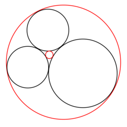 The receiver position can be interpreted as the center of an inscribed sphere (insphere) of radius bc, given by the receiver clock bias b (scaled by the speed of light c). The insphere location is such that it touches other spheres. The circumscribing spheres are centered at the GPS satellites, whose radii equal the measured pseudoranges pi. This configuration is distinct from the one described above, in which the spheres' radii were the unbiased or geometric ranges di.[171]:36–37[173]
