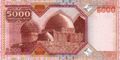 5,000 tenge banknote issued in 2008 to commemorate 15 years of the Kazakhstani tenge (back).