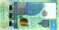 5,000 tenge banknote issued in 2001 with overprint to commemorate the tenth anniversary of independence from the Soviet Union (back).