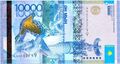 10,000 tenge banknote issued in 2011 to commemorate the 20th anniversary of independence from the Soviet Union (front).