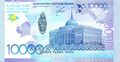 10,000 tenge banknote issued in 2011 to commemorate the 20th anniversary of independence from the Soviet Union (back).
