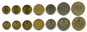| Second series coins of the Kazakh tenge (1997–2018)[13] | |||||||||||||||||||||||||||||||||||||||||||||||||||||||||||||||||||||