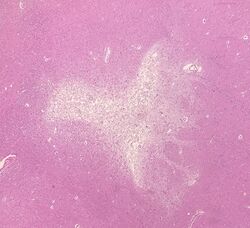 The two proposed mechanisms are microatheroma and lipohyalinosis.[10] At the beginning, lipohyalinosis was thought to be the main small vessel pathology, but microatheroma now is thought to be the most common mechanism of arterial occlusion (or stenosis). Occasionally, atheroma in the parent artery blocks the orifice of the penetrating artery (luminal atheroma), or atheroma involves the origin of the penetrating artery (junctional atheroma). Alternatively, hypoperfusion is believed to be the mechanism when there is stenosis of the penetrating artery. When no evidence of small vessel disease is found on histologic examination, an embolic cause is assumed, either artery-to-artery embolism or cardioembolism. In one recent series, 25% of patients with clinical radiologically defined lacunes had a potential cardiac cause for their strokes.