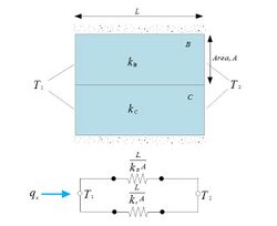 [math]\displaystyle{ {R_{t,\rm cond} = {L \over (k_b + k_c)A}} }[/math] |