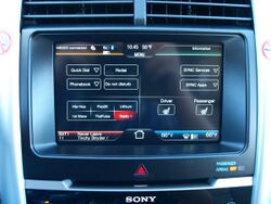 MyFord Touch (branded as MyLincoln Touch on Ford's Lincoln brand products[1]) is an in-car communications and entertainment system developed by the Ford Motor Company, based on Microsoft technologies. The technology was factory installed with Ford product offerings and was based on the Microsoft Auto 4.0 software platform. It was regarded as the next-generation of Ford Sync. Announced in January 2010, at the Consumer Electronics Show (CES), the technology launched with the 2011 Ford Edge. Reviews of MyFord Touch were overwhelmingly negative. A USB drive, self-installed software upgrade became available in March, 2012; this update was mailed out free-of-charge to all Ford customers, and Ford also offered free installation of the update by any Ford dealer. The update did not address continuing problems with light-touch capacitor switches (on cars so equipped) that control many functions.[2][3][4][5] Several updates have since been released which allowed for more natural speech recognition, simpler Bluetooth pairing, and refinement of the on-screen interface and menus.[6]