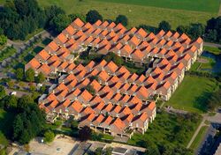 The principle Aesthetics of Number proved to be less useful for structuring an entire city. However, exemplary articulated configurations did arise, both in architecture and housing schemes. The first influential images for this direction Aldo van Eyck provided with aerial photos of his orphanage in Amsterdam (1960). Later he built another inspiring configuration for the Space Centre Estec in Noordwijk (1989). These two compositions can be counted among the most beautiful "icons" of structuralism.[12]