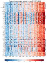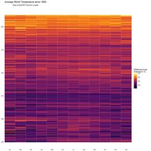 This "stack", technically a heat map, organizes temperatures by month (horizontally) and year (vertically).[93]