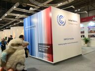 Warming stripes at the 2019 United Nations Climate Change Conference (COP25).[48]