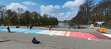 Warming stripes on the Saxons' Bridge in Leipzig, Germany[49]