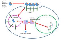 This shows a possible pathway through which steroid hormones are endocytosed and proceed to affect cells via a genomic pathway.