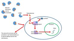 One study has found that these steroid-carrier complexes are bound by megalin, a membrane receptor, and are then taken into cells via endocytosis. One possible pathway is that once inside the cell these complexes are taken to the lysosome, where the carrier protein is degraded and the steroid hormone is released into the cytoplasm of the target cell. The hormone then follows a genomic pathway of action. This process is shown in Figure 2 to the right.[10] The role of endocytosis in steroid hormone transport is not well understood and is under further investigation.