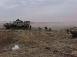 In July 2009, the Canadian Department of National Defence announced that $5 billion would be spent to enhance, replace and repair the army's armoured vehicles. Part of the spending would be used to replace and repair damaged LAV III's due to wear and tear from operations in Afghanistan. As much as 33 percent of the army's light armoured vehicles were out of service.[80] Furthermore, the LAV III's will be upgraded with improved protection and automotive components.[81] The Canadian Armed Forces has lost over 34 vehicles and 359 were damaged during the mission in Afghanistan. The Canadian army has lost 13 LAVs and more than 159 were damaged by roadside bombs or enemy fire.[82] Of the $5 billion announced, approximately 20% of it will be used to upgrade LAV III models. The upgrade will extend the LAV III life span to 2035. The remaining $4 billion is to be spent on a "new family of land combat vehicles".[83] The Department of National Defence considered the purchase of vehicles meant to accompany the Leopard 2 and to sustain the LAV III into combat. The CV90, the Puma (IFV) and the Véhicule blindé de combat d'infanterie were the most likely candidates for the role. A contract of 108 with an option for up to 30 more was considered,[84][85][86] but a combination of budget cuts and upgrades to the existing fleet of LAV IIIs have led the Canadian Army to cancel its order for 108 CV90s.[87]