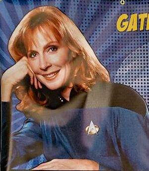 Cheryl Gates McFadden (born March 2, 1949 in Cuyahoga Falls, Ohio), is known for being a prominent actress in American television, film and theater. Gates McFadden is an accomplished dancer and she is also a choreographer, being credited under her name Cheryl McFadden when working as a choreographer and Gates McFadden when working as an actress. McFadden is most known for her role as Dr. Beverly Crusher throughout six of the seven seasons of Star Trek: The Next Generation and in four Star Trek theatrical films. McFadden also directed the Star Trek: The Next Generation seventh season episode "Genesis" and choreographed the dance routine in the fourth season episode "Data's Day". McFadden is notable for her fiery red hair, startling blue eyes, and razor cheekbones. Graduating with a Bachelor of Arts (cum laude) in the theatre arts at Brandeis University in Waltham, Massachusetts. Mcfadden then moved to Paris to focus on studies in theatre with actor Jacques Lecoq at his school. McFadden is of Lithuanian descent on her mother's side.
