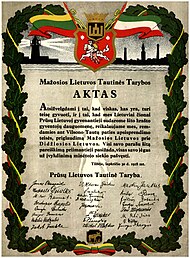 Lithuania declared its independence from Russia in 1918 during World War I. Some Prussian Lithuanian activists signed the Act of Tilsit, demanding unification of Lithuania Minor and Lithuania Major into a single Lithuanian state, thus detaching the areas of East Prussia from Germany which were inhabited by Prussian Lithuanians. This claim was supported by the Lithuanian government. The part north of the Neman River up to Memel was separated from Germany by the Treaty of Versailles in 1920, and was called the Memel Territory. It was made a protectorate of the Entente States, in order to guarantee port rights to Lithuania and Poland. In January 1923, the Klaipėda Revolt took place and Klaipėda region was annexed to Lithuania in 1923 under violation[14] of the Treaty of Versailles. The subsequent incorporation of the territory brought economic prosperity to Lithuania, with the region accounting for 30 percent of the country's economy. However, the region's economic significance declined after economic sanctions were imposed by Nazi Germany in 1933. Nazi Germany persecuted the Lithuanian population of the region. In 1938 a massive campaign of renaming of placenames was carried out in the German-held part of Lithuania Minor in attempt to erase traces of Lithuanian origin. In 1940, the last Lithuanian newspaper published in Tilsit was closed by the Nazis.[10]