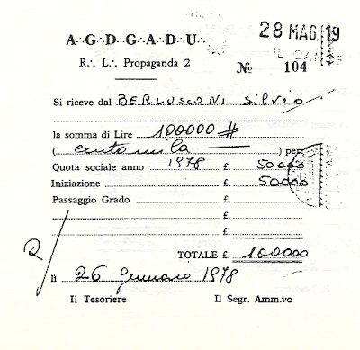 The source of his original wealth is currently disputed: in particular, Berlusconi received several large loans from the Rasini Bank, which was later discovered to be a coverup for the money laundering activity of the mafia,[3] being also linked with the masonic lodge P2 (Berlusconi was also a member of the P2, card n. 1816).[4] Berlusconi has always defended himself saying that money came from his father Luigi, also an employee of the Rasini Bank.[5]