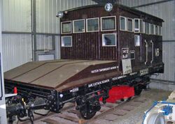 A flanger (also known as a scraper or digger) is a railroad car that clears the space between the rails, generally of ice and snow. While a wedge plow can remove snow above the surface of the rails, the flanger removes snow and ice from below the surface of the rails where the railway wheel flanges fit.[1] Railway locomotives and cars can be derailed if the flangeway is filled.[2]