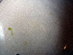 Crazing is a glaze defect of glazed pottery. Characterised as a spider web pattern of cracks penetrating the glaze, it is caused by tensile stresses greater than the glaze is able to withstand.[7][8] In pottery a distinction is often made between crazing, as an accidental defect, and "crackle", when the same phenomenon, often strongly accentuated, is produced deliberately. The Chinese in particular enjoyed the random effects of crackle and whereas in Ru ware it seems to have been a tolerated feature of most pieces, but not sought, in Guan ware a strong crackle was a desired effect.