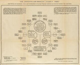 The business or "corporate" trust came into use in the 19th-century United States, during the Gilded Age, as a legal device to consolidate industrial activity across state lines. In 1882 John D. Rockefeller and other owners of Standard Oil faced several obstacles to managing and profiting from their large oil refining business. The existing approach of owning and dealing with several companies in each state was unwieldy, often resulting in turf battles and non-uniform practices. Furthermore, the Pennsylvania legislature proposed to tax out-of-state corporations on their entire business activity. Concerned that other states could follow, Standard Oil had its attorney Samuel C. T. Dodd adapt the common law instrument of a trust to avoid cross-state taxation and to impose a single management hierarchy.[3] The Standard Oil Trust formed pursuant to a trust agreement in which the individual shareholders of many separate corporations agreed to convey their shares to the trust; it ended up entirely owning 14 corporations and also exercised majority control over 26 others.[3] Nine individuals held trust certificates and acted as the trust's board of trustees.[3] One of those trustees, Rockefeller himself, held 41% of the trust certificates; the next most powerful trustee held about 13%. This trust became a model for other industries.[3]