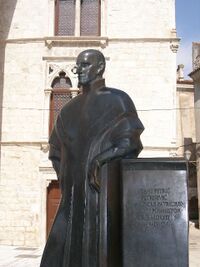 Francesco Patricius came from the town Cres on the homonymous island in front of Istria (Italian Cherso ).[13] At that time the island belonged to Republic of Venice. Francesco was an illegitimate son of the priest Stefano di Niccolò di Antonio Patricius (Stjepan Nikola Antun Petriš or Petrić), who belonged to the lower nobility. His mother was Maria Radocca[14] (also "Borofcich"[15]), a local woman who later married another man,[15] and possibly "shared the bed with two priests of the same [Patrizi] family."[14] In older literature, Francesco's father was mistakenly identified with the judge of the same name, Stefano di Niccolò di Matteo Patricius, and his mother Maria was identified with Maria Lupetino, the judge's alleged wife. Also incorrect is the claim related to the erroneous genealogy of a relationship of the philosopher with the famous theologian Matthias Flacius.[16]