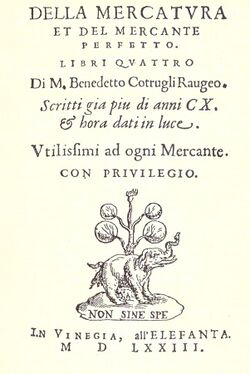 One of the benefits of the trip, however, was the prospect of making a living in the long-distance book trade. The export of books from Italy to Barcelona seemed lucrative; Patricius had been able to reach an agreement with business partners there before he left. Shipping started and actually proved worthwhile at first, but the company eventually failed because of the philosopher's inexperience and lack of business talent. A serious blow hit Patricius in 1570 when the Turks in Cyprus captured a shipment of goods belonging to him and intended for export to Venice, for which he had spent 3,500 ducats. As a result, he got into such trouble that he turned to his former employer, Contarini, who he still owed him 200 ducats. When the latter refused to pay, a lengthy process appeared which Patricius apparently lost.[31]