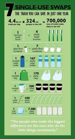 Another issue is that removing marine debris from the ocean can potentially cause more harm than good. Cleaning up microplastics could also accidentally take out plankton, which are the main lower level food group for the marine food chain and over half of the photosynthesis on earth.[66] One of the most efficient and cost effective ways to help reduce the amount of plastic entering our oceans is to not participate in using single-use plastics, avoid plastic bottled drinks such as water bottles, use reusable shopping bags, and to buy products with reusable packaging.[67]