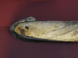 Some Native Americans treated meteorites as ceremonial objects. In 1915, a 61-kilogram (135 lb) iron meteorite was found in a Sinagua (c. 1100–1200 AD) burial cyst near Camp Verde, Arizona, respectfully wrapped in a feather cloth.[72] A small pallasite was found in a pottery jar in an old burial found at Pojoaque Pueblo, New Mexico. Nininger reports several other such instances, in the Southwest US and elsewhere, such as the discovery of Native American beads of meteoric iron found in Hopewell burial mounds, and the discovery of the Winona meteorite in a Native American stone-walled crypt.[72][73]
